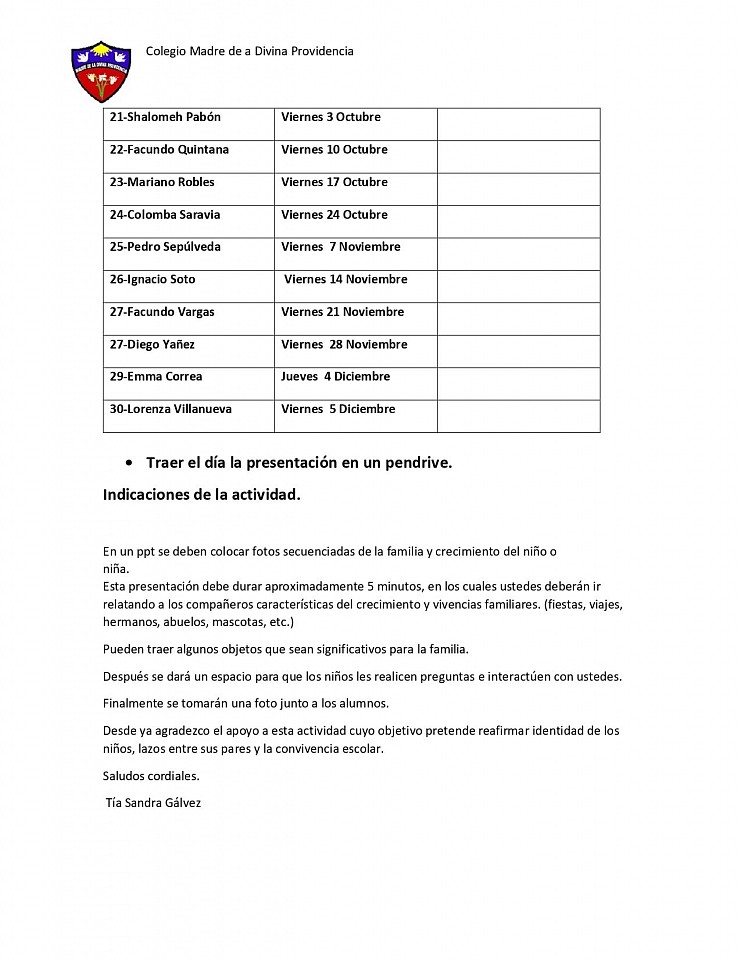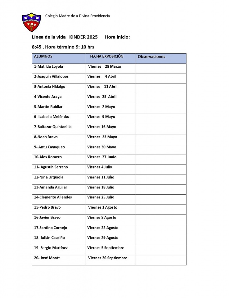 Podrás revisar la fecha que te correspondo junto a tu familia presentar la línea de la vida de tu hij@